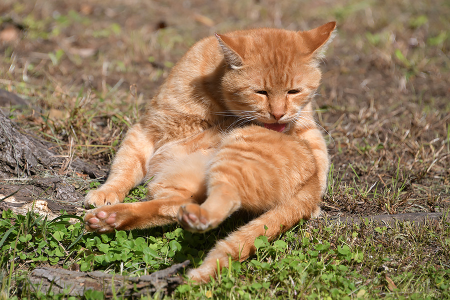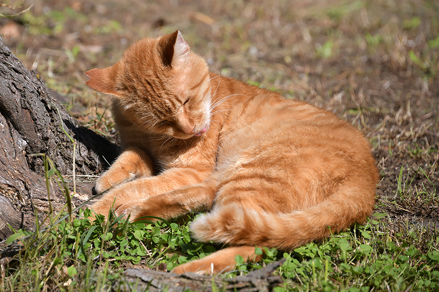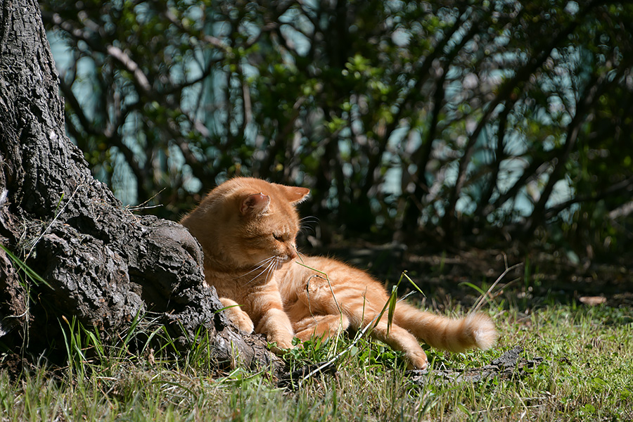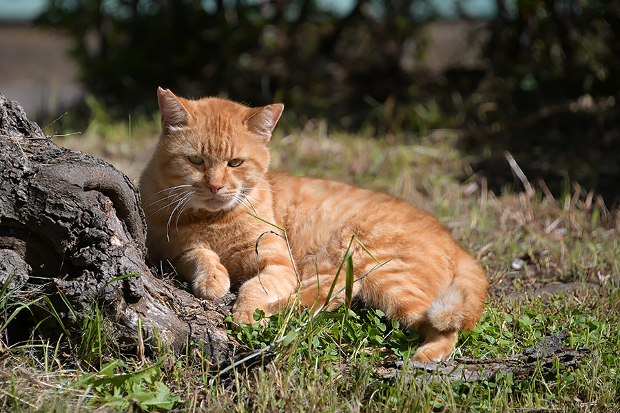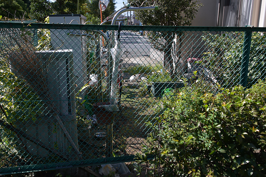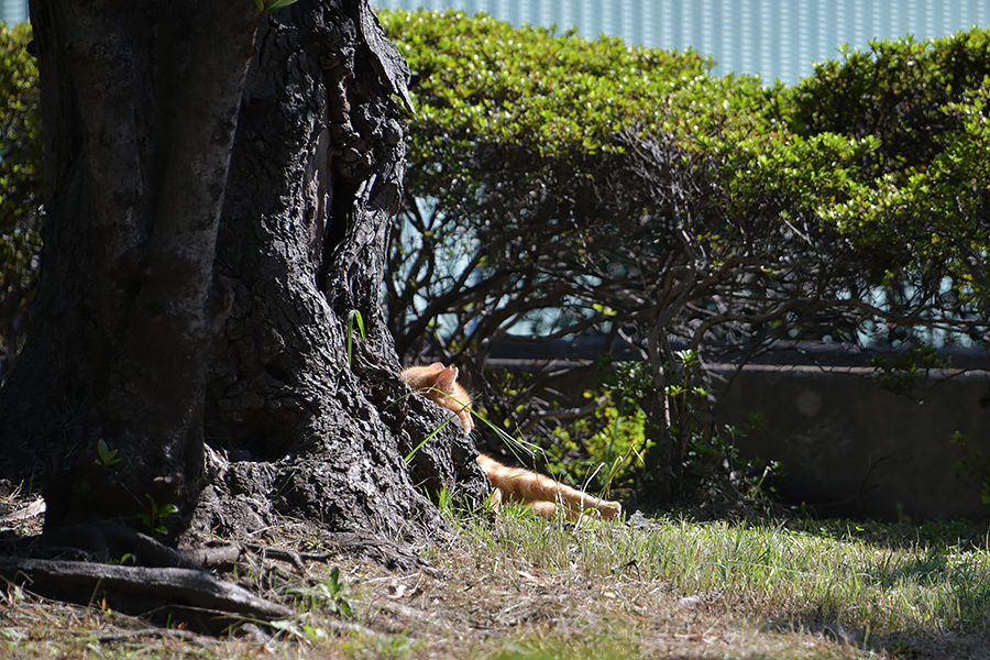 フェンスの向こうにキジ白ねこさんを見つけました。