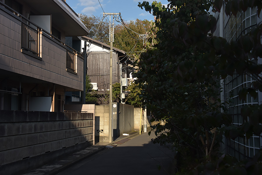 建物の間に入って行きました。