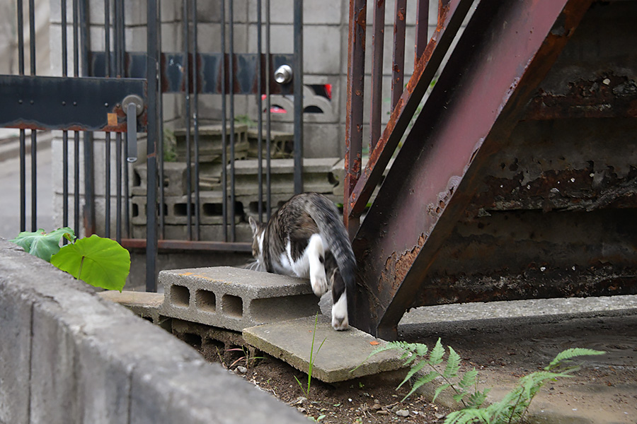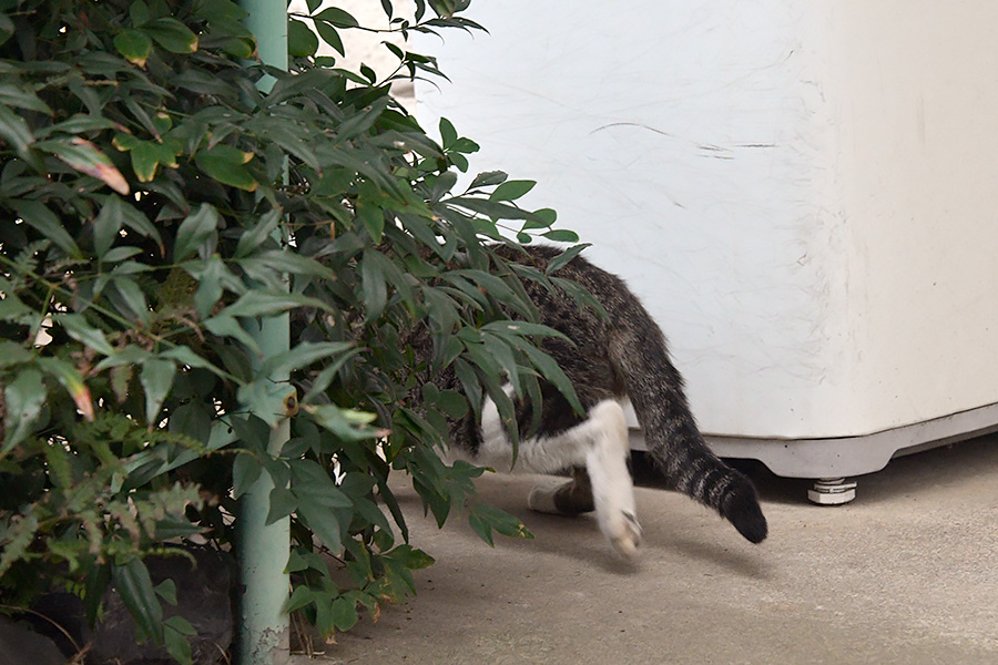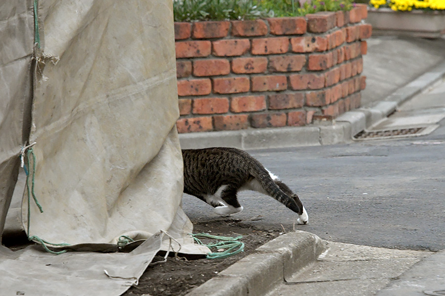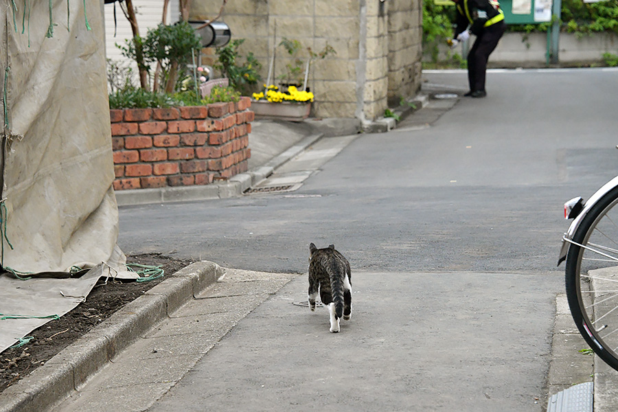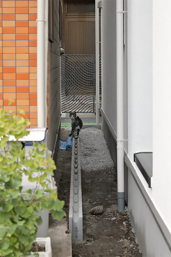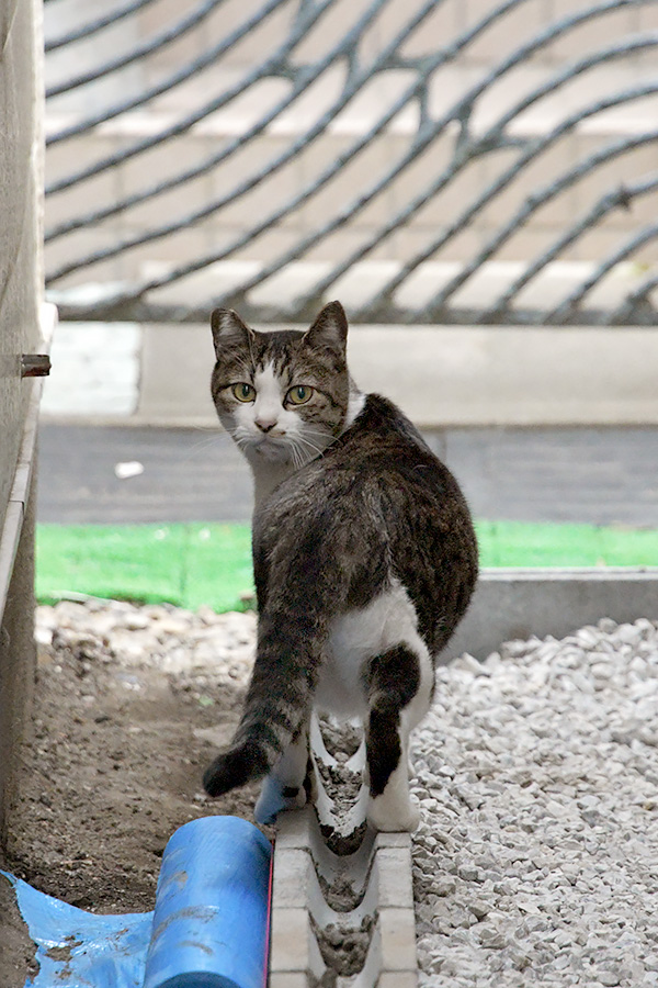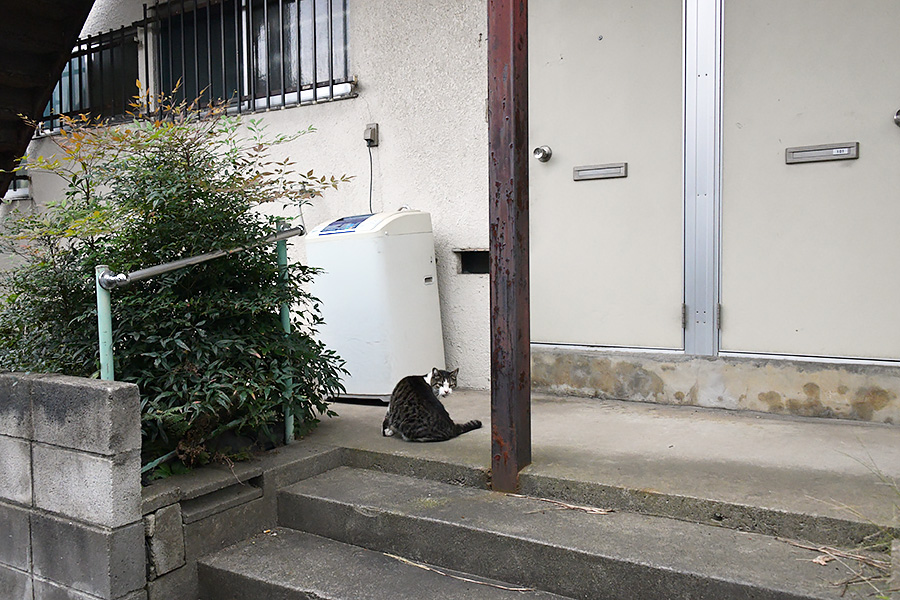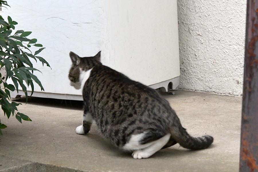 アパートの前にキジ白ねこさんが居ました。