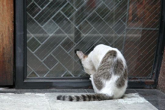 引き続き銀座の子です。 ガラスに向かって何か話しかけています。